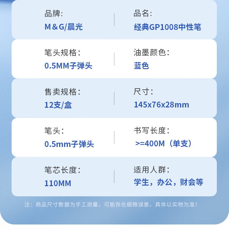 晨光/M&G GP1008 书写用笔类用具 蓝色中性笔一盒